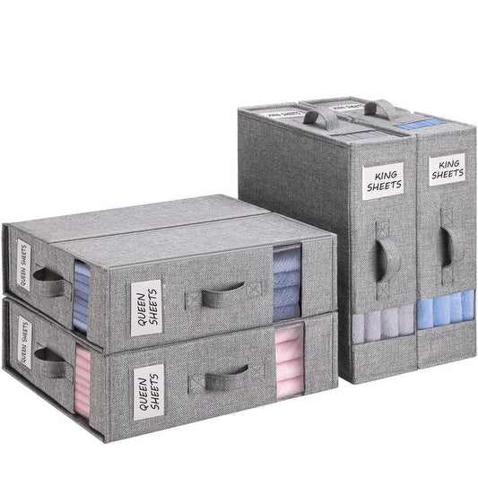 ✨ Bed Sheet Organizer Set – Foldable Double-Window Storage for Queen/King Bedding